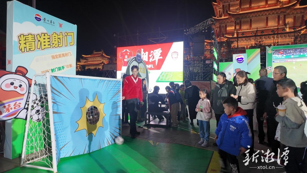 现场设置的迷你球门成为互动亮点,球迷们可参与复刻点球大战,进球即可免费品鉴“湘超”特调;赛事打卡墙前,市民纷纷签名留影,参与“猜胜负赢大奖”活动;4名NPC化身“酱香文化官”与“赛事互动官”,讲解茅台文化,带领球迷玩转互动游戏,为观赛增添更多趣味。