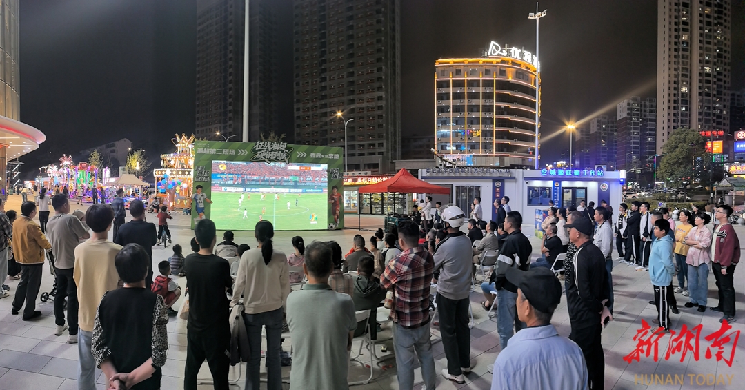 全市精心设置万豪城市广场、五江碧桂园城市广场、吾悦广场等12处观赛点,市民们纷纷围聚在大屏幕前,为赛场上的娄底队呐喊助威、热血沸腾。比赛临近尾声时,娄底队屡屡逼近破门,每一次进攻都扣人心弦,全场观众的心情随之跌宕起伏,呐喊声、惊呼声、叹息声交织一片,将观赛气氛推向高潮。
