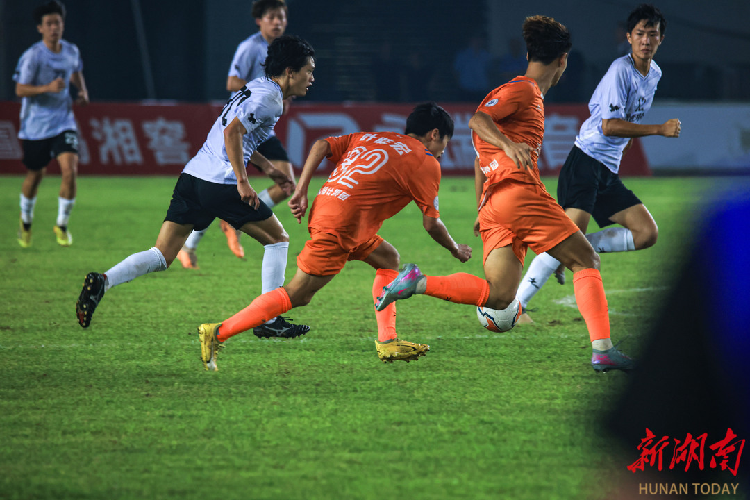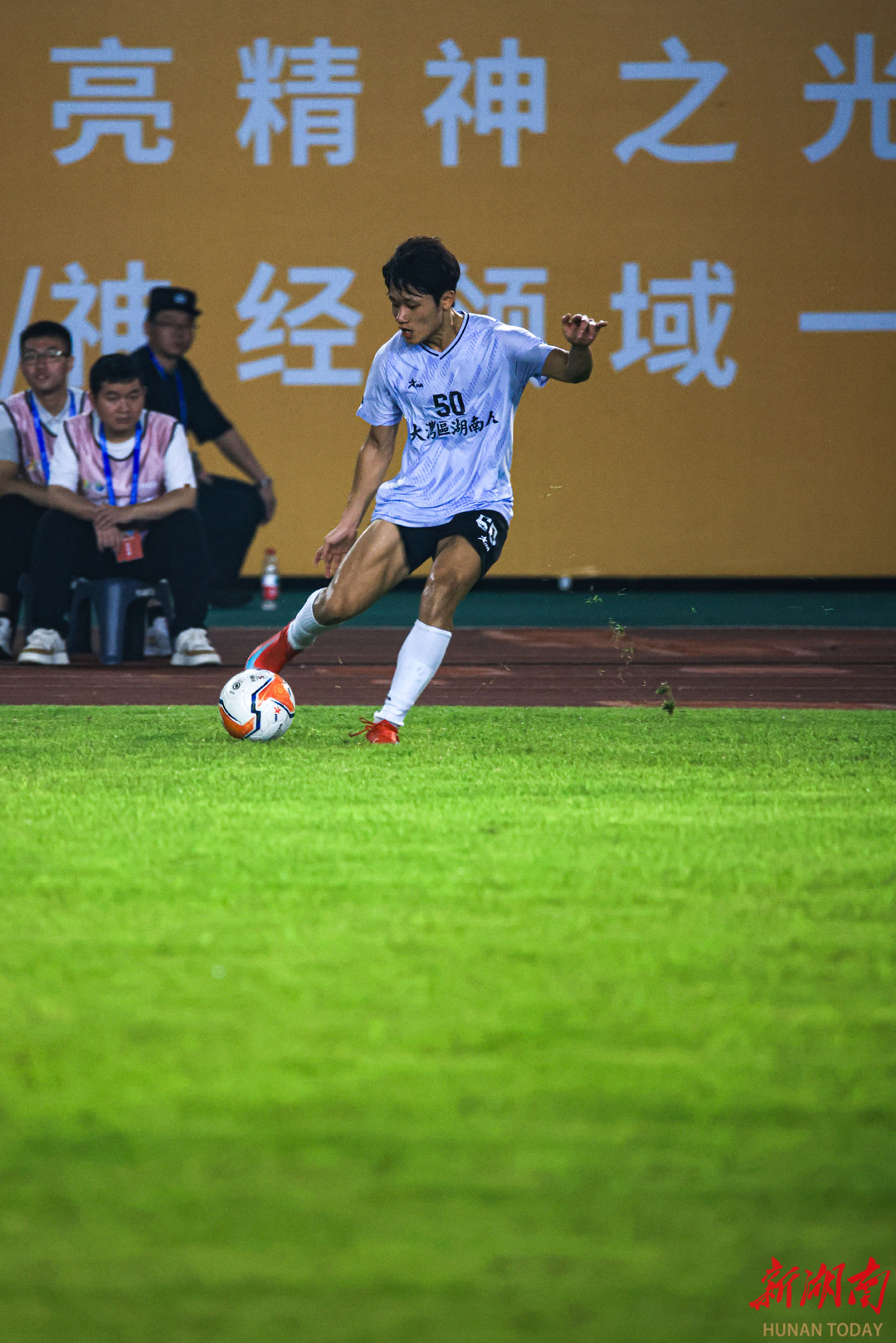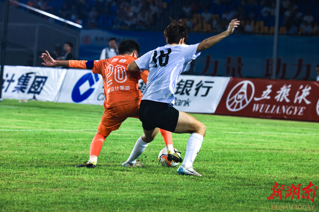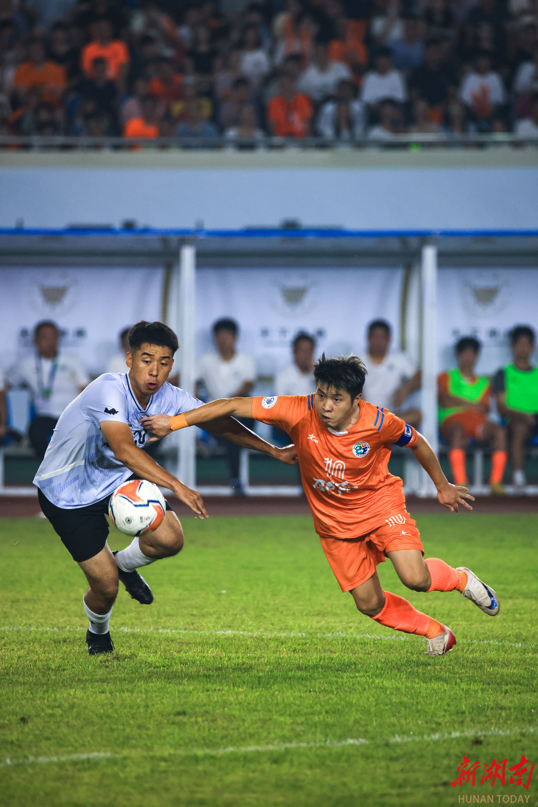 湘超联赛,湖南足球联赛,湘超赛程,湘超直播,湘超积分榜,湘超球队/湘超联赛为湖南足球迷提供最新赛程、实时比分、积分榜排名、球队信息和直播入口,掌握最新赛事动态,畅享足球激情。“归来吧,归来哟,浪迹天涯的游子,别再四处飘泊。”10月1日晚,邵阳市体育中心,湘超联赛邵阳队在主场迎来了大湾区湖南人足球联队的回乡踢馆友谊赛。1:1,比分定格在巨型电子屏上,双方在这场“省亲战”中握手言和。哨声不是终点,而是外乡游子以湘超为纽带,奔赴家乡的起点。(刘丰 叶竹 袁红霞 摄)