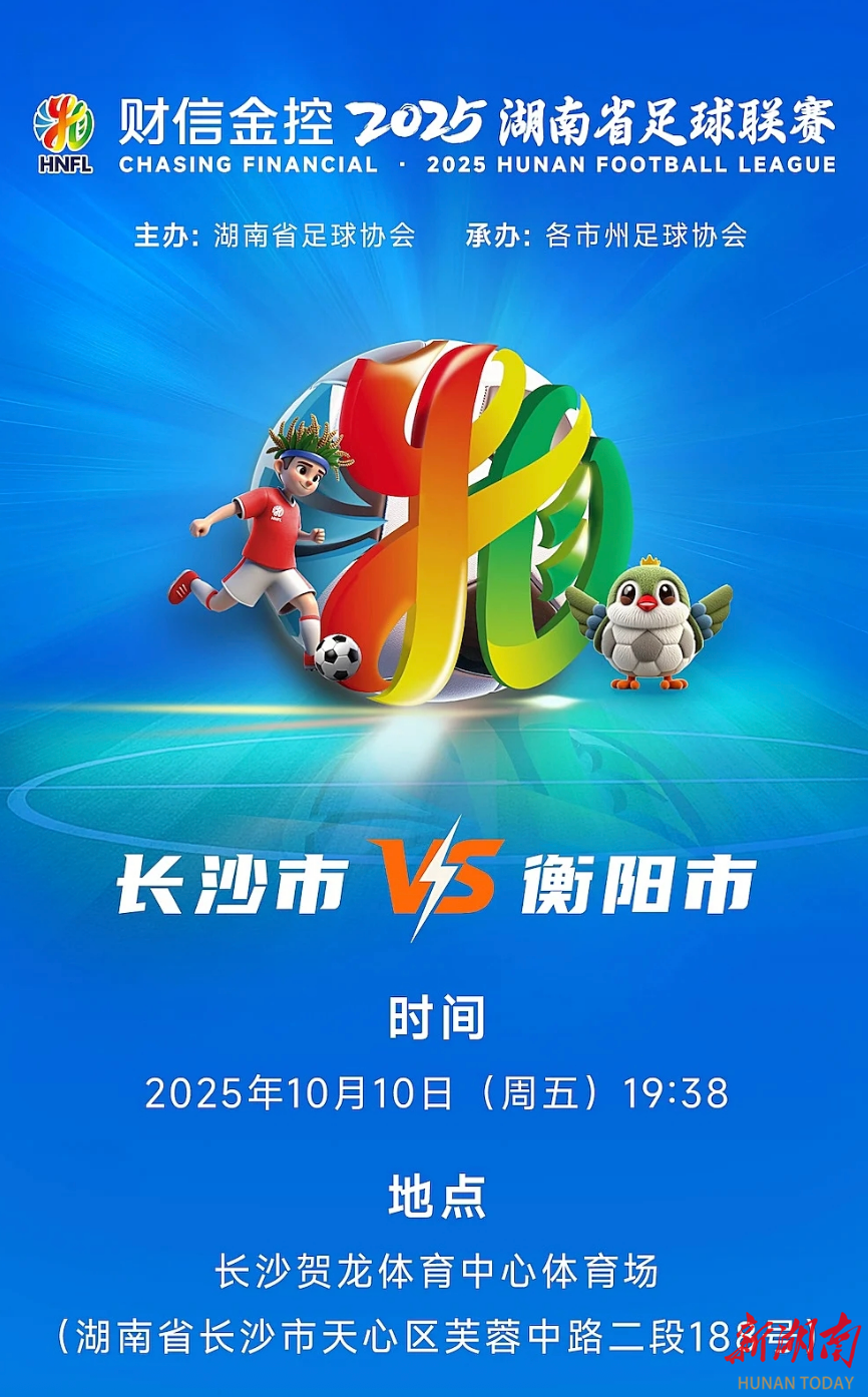 文脉与美食的温柔交融外,竞技场上的碰撞同样精彩!10月10日湘超联赛,长沙队主场迎战衡阳队,将用汗水书写另一种“双城热血”。