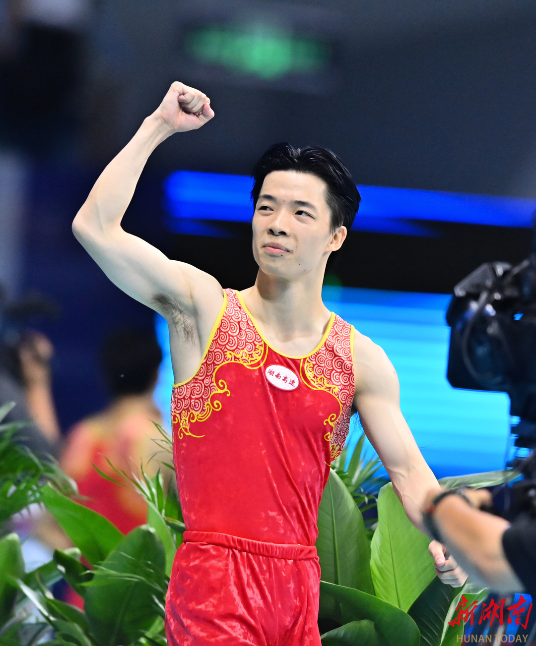 “65.79分!”10月12日的广州体育馆内,电子记分牌数字定格的刹那,湖南高速集团蹦床队瞬间爆发出欢呼,巴黎奥运会季军、株洲伢子严浪宇振臂跃起,与队友、教练紧紧相拥。