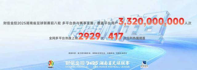 湘超联赛,湖南足球联赛,湘超赛程,湘超直播,湘超积分榜,湘超球队/湘超联赛为湖南足球迷提供最新赛程、实时比分、积分榜排名、球队信息和直播入口,掌握最新赛事动态,畅享足球激情。长沙晚报掌上长沙11月3日讯(全媒体记者 赵紫名)11月3日下午,财信金控2025湖南省足球联赛(以下简称“湘超”联赛)媒体见面会在长沙举行,会上公布了联赛前八轮相关数据信息。自9月7日开幕以来,累计超过116.375万名观众到现场观赛,各大社交媒体平台热门线亿次,带动交通、餐饮、住宿消费总额71.59亿元。