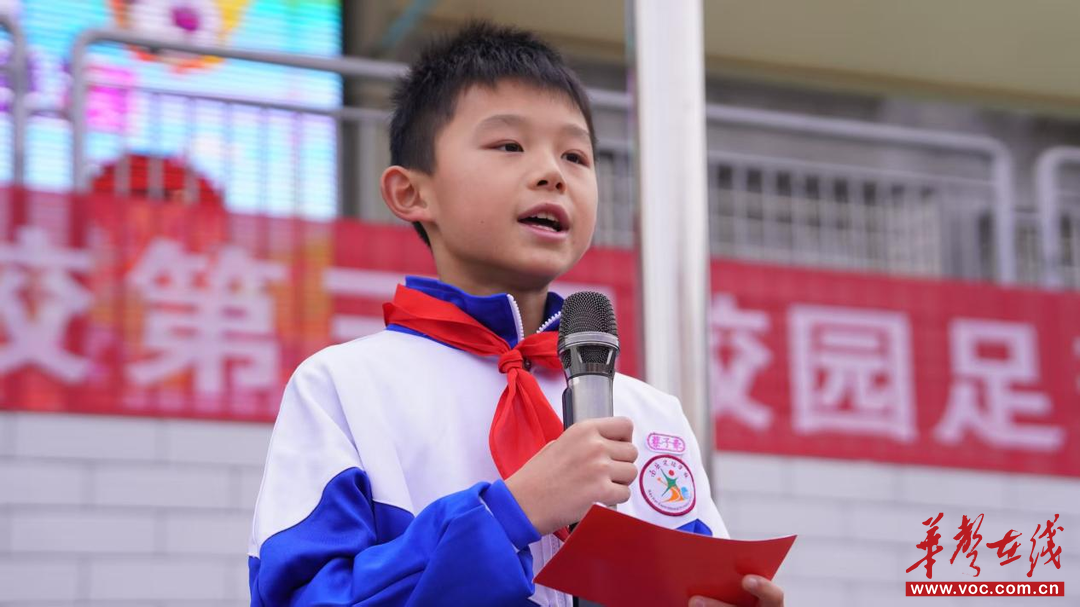 该校校长吴正强在开幕式上致辞。他指出:“这片绿茵场见证了两届赛事中同学们的拼搏与成长——从新手蜕变的突破、团队协作的默契,到受伤仍坚守的坚韧,足球早已成为我们成长的必修课。”他寄语全体队员延续团结拼搏的赛场精神,在每一次奔跑中释放活力,在每一次配合中凝聚力量,并将赛场上的收获延伸到校园生活的方方面面。