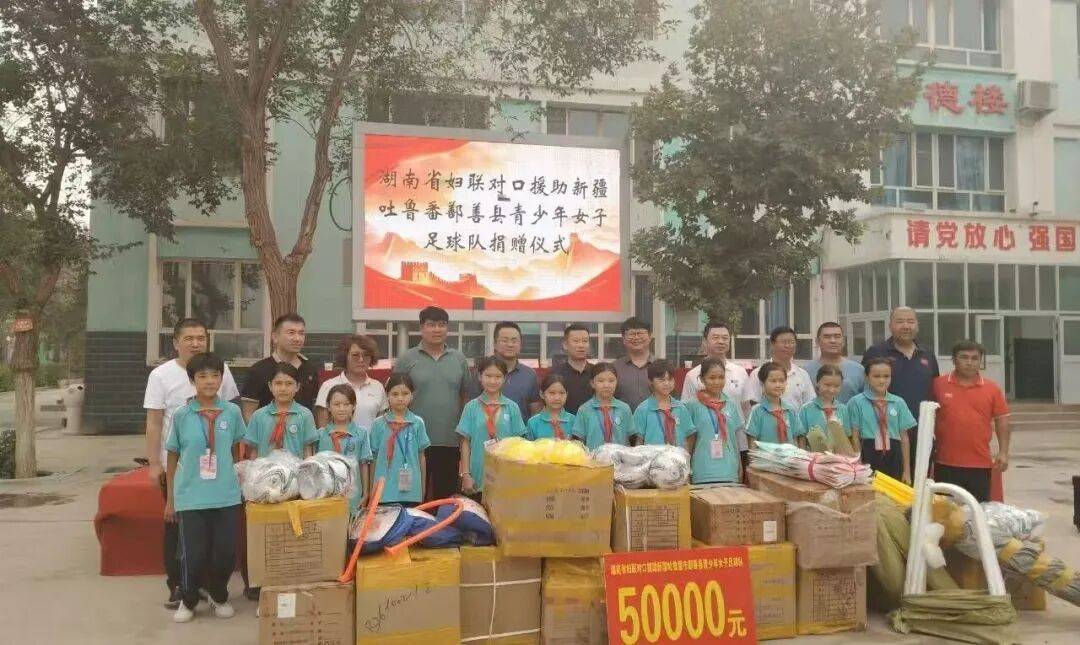 2024年8月,湖南省妇联拨付5万元援疆专项经费,用于鄯善县青少年女子足球队建设,并联合爱心企业捐赠220套参赛服装,分发给鄯善县4个学校女子足球队。鲁克沁镇中心学校女子足球队就是受益的5支球队之一。