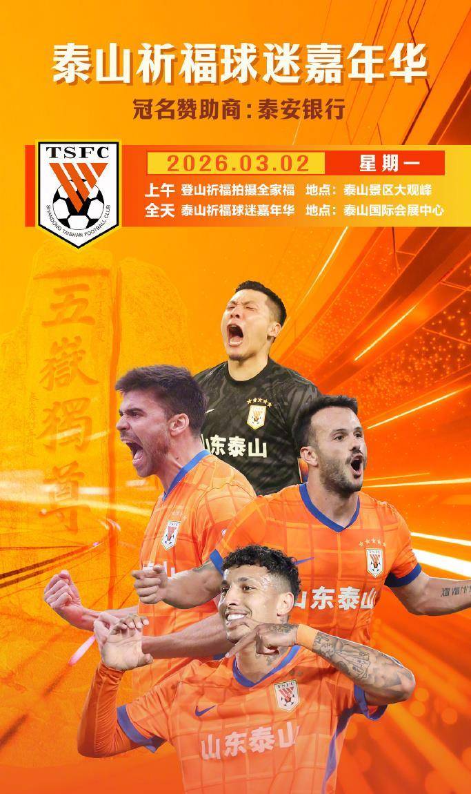 湘超联赛,湖南足球联赛,湘超赛程,湘超直播,湘超积分榜,湘超球队/湘超联赛为湖南足球迷提供最新赛程、实时比分、积分榜排名、球队信息和直播入口,掌握最新赛事动态,畅享足球激情。2026年2月18日下午4点整,山东泰山足球俱乐部的官方社交媒体账号发布了一则公告。 公告的核心内容有两项:一是正式敲定了新赛季的“泰山祈福球迷嘉年华”活动,二是该活动的冠名赞助商同步揭晓。 这一天是农历正月初二,俱乐部的官宣在向球迷拜年的同时,也投下了一颗关于新赛季的重磅炸弹。 冠名赞助商的名字是泰安银行。 这意味着,这项已经延续了二十多年的球队传统活动,在新赛季获得了新的强力支持。 活动定于2026年3月2日,也就是农历正月十四,星期一全面启动。